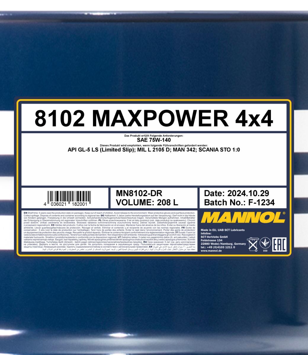 Olej MANNOL 75W140 MAXPOWER 4X4 GL-5 LS 208L