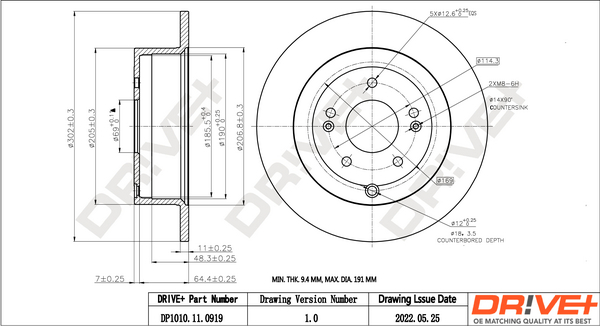 | Minimalna grubość [mm] | 9,4 |