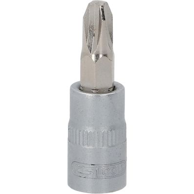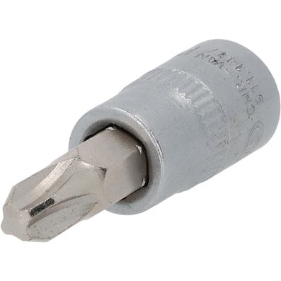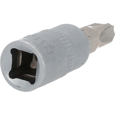 Gniazdo bitów do wkretów z rowkiemkrzyzowym PH, PH3, 1/4"•PH•wewnętrzna nakładka czterokątna zgodna z DIN 3120 / ISO1174 z blokadą kulkową•z wciskanym, niklowanym wkładem bitowym•do obsługi ręcznej•mat satynowany•chrom-wanad