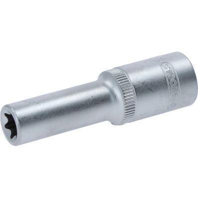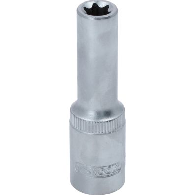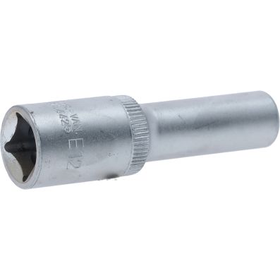 Gniazdo Torx-E, dlugie, E12, 1/2"•Torx-E•wewnętrzna nakładka czterokątna zgodna z DIN 3120 / ISO1174 z blokadą kulkową•model długi•do obsługi ręcznej•mat satynowany•chrom-wanad