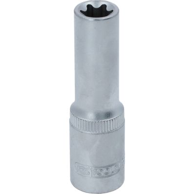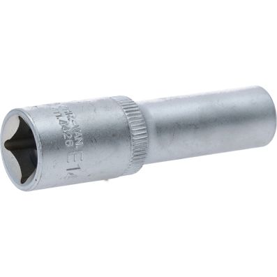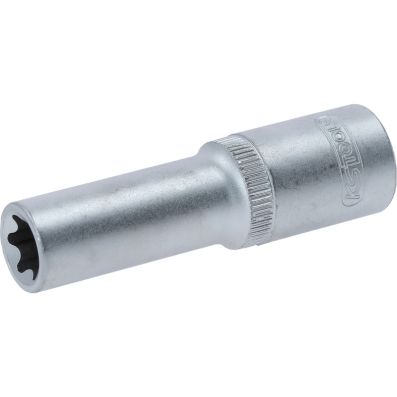 Gniazdo Torx-E, dlugie, E14, 1/2"•Torx-E•wewnętrzna nakładka czterokątna zgodna z DIN 3120 / ISO1174 z blokadą kulkową•model długi•do obsługi ręcznej•mat satynowany•chrom-wanad