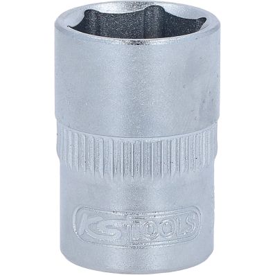 Nasadka szesciokatna, 14mm, 3/8"•6-kątny•profil FlankTraction•zgodny z DIN 3124 / ISO 2725•wewnętrzna nakładka czterokątna zgodna z DIN 3120 / ISO1174 z blokadą kulkową•do obsługi ręcznej•mat satynowany•chrom-wanad