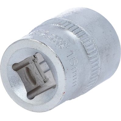 Nasadka szesciokatna, 16mm, 3/8"•6-kątny•profil FlankTraction•zgodny z DIN 3124 / ISO 2725•wewnętrzna nakładka czterokątna zgodna z DIN 3120 / ISO1174 z blokadą kulkową•do obsługi ręcznej•mat satynowany•chrom-wanad