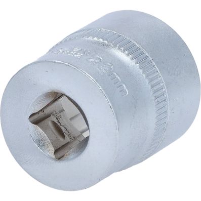 Nasadka szesciokatna, 22mm, 3/8"•6-kątny•profil FlankTraction•zgodny z DIN 3124 / ISO 2725•wewnętrzna nakładka czterokątna zgodna z DIN 3120 / ISO1174 z blokadą kulkową•do obsługi ręcznej•mat satynowany•chrom-wanad
