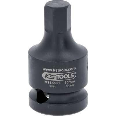 1/2" Gniazdo udarowe bitów dla śrub z łbem sześciokątnym,krótkie,10mm•Gniazdo sześciokątne•nakrętka czworokątna zgodna z DIN 3121 / ISO 1174•model krótki•dla obsługi maszynowej•fosfatowane•chrom - molibden