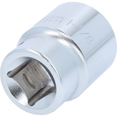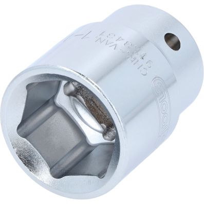 3/4" Nasadka sześciokątna, krótka,1.1/8"•6-kątny•profil FlankTraction•zgodny z DIN 3124 / ISO 2725•wewnętrzna nakładka czterokątna zgodna z DIN 3120 / ISO1174 z blokadą kulkową•model krótki•do obsługi ręcznej•mat satynowany•chrom-wanad