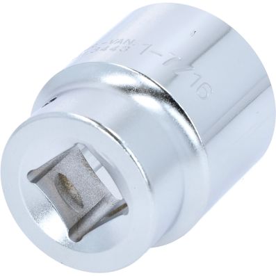 3/4" Nasadka sześciokątna, krótka,1.7/16"•6-kątny•profil FlankTraction•zgodny z DIN 3124 / ISO 2725•wewnętrzna nakładka czterokątna zgodna z DIN 3120 / ISO1174 z blokadą kulkową•model krótki•do obsługi ręcznej•mat satynowany•chrom-wanad