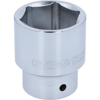 3/4" Nasadka sześciokątna, krótka,1.5/8"•6-kątny•profil FlankTraction•zgodny z DIN 3124 / ISO 2725•wewnętrzna nakładka czterokątna zgodna z DIN 3120 / ISO1174 z blokadą kulkową•model krótki•do obsługi ręcznej•mat satynowany•chrom-wanad