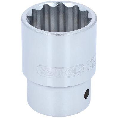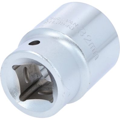 3/4" Nasadka 12-kątna, krótka,32mm•12-kątne•profil FlankTraction•zgodny z DIN 3124 / ISO 2725•wewnętrzna nakładka czterokątna zgodna z DIN 3120 / ISO1174 z blokadą kulkową•model krótki•do obsługi ręcznej•mat satynowany•chrom-wanad