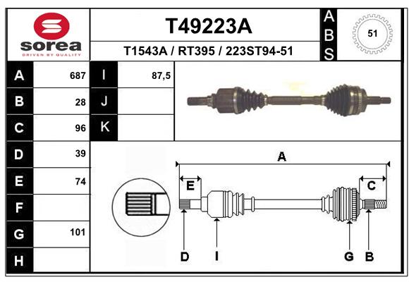 | Średnica przegubu po stronie skrzyni biegów [mm] | 89 |