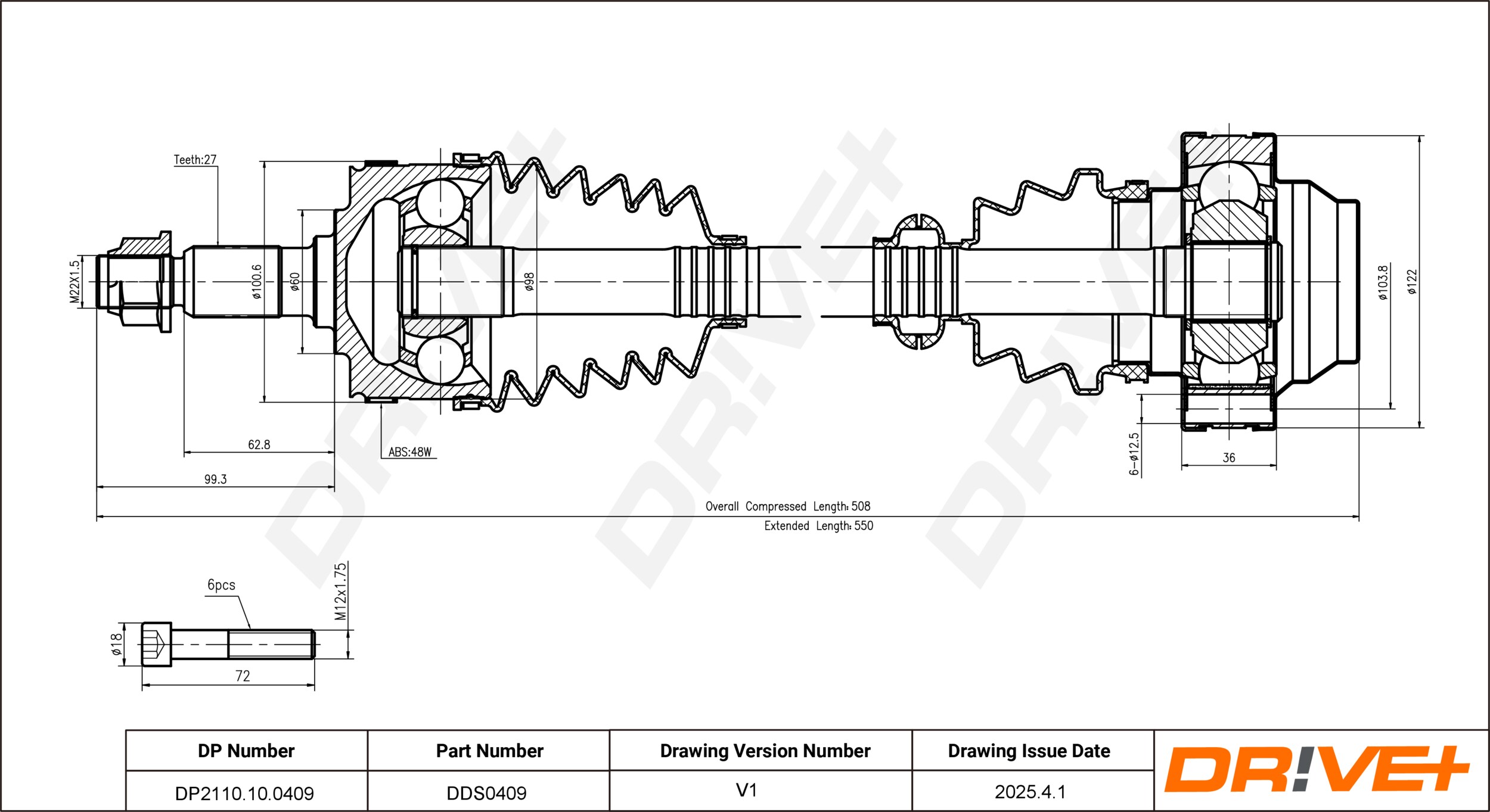 | Średnica przegubu po stronie koła [mm] | 98 |