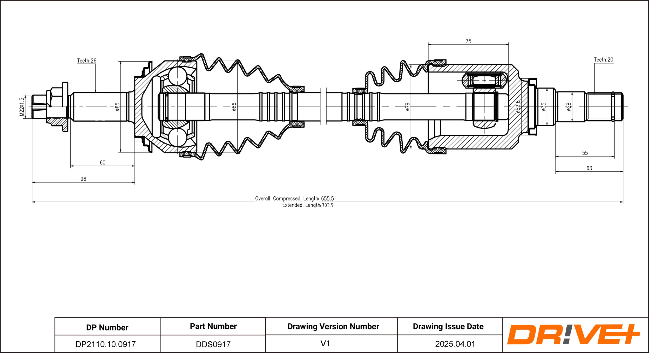 | Średnica przegubu po stronie skrzyni biegów [mm] | 82 |