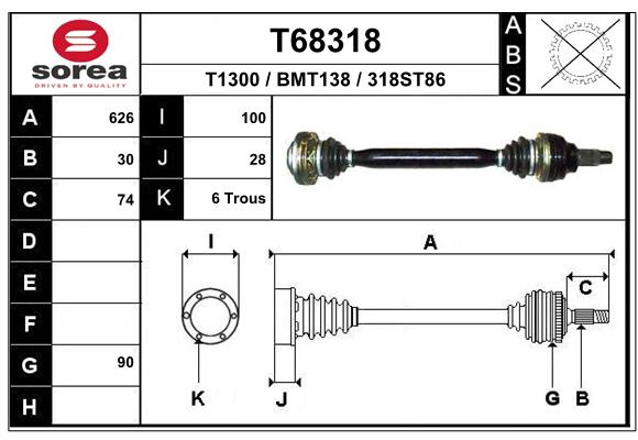 T68318Półoś napędowa (kaucja - patrz uwagi)kaucja 80 zł netto