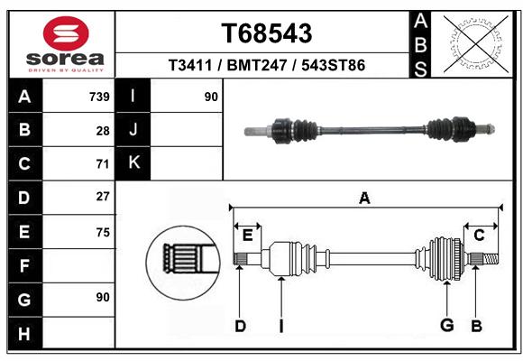 | Średnica przegubu po stronie skrzyni biegów [mm] | 88,4 |