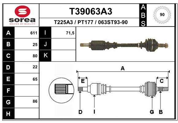 T39063A3Półoś napędowa (kaucja - patrz uwagi)kaucja 80 zł netto