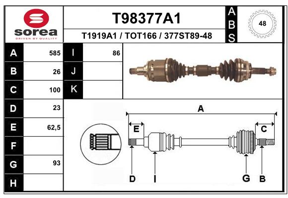 26/27/63MM/48ABS / LEXUS RX 03-08, TOYOTA AVENSIS VERSO 01-09, COROLLA VERSO 02-09, RAV 4 II 00-