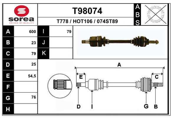 T98074Półoś napędowa (kaucja - patrz uwagi)