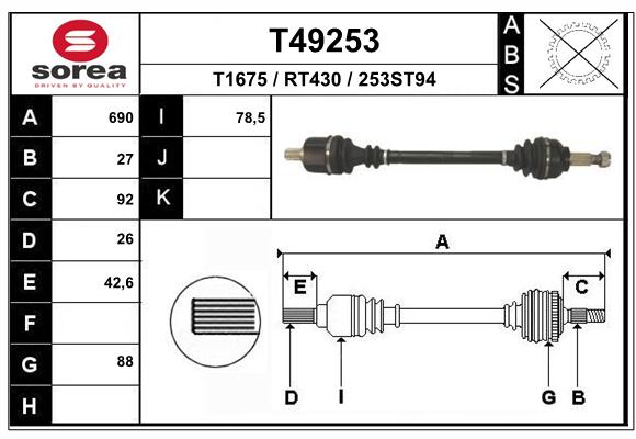 T49253Półoś napędowa (kaucja - patrz uwagi)kaucja 80 zł netto