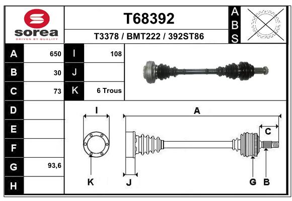 EAI T68392Półoś napędowa (kaucja - patrz uwagi)kaucja 80 PLN netto