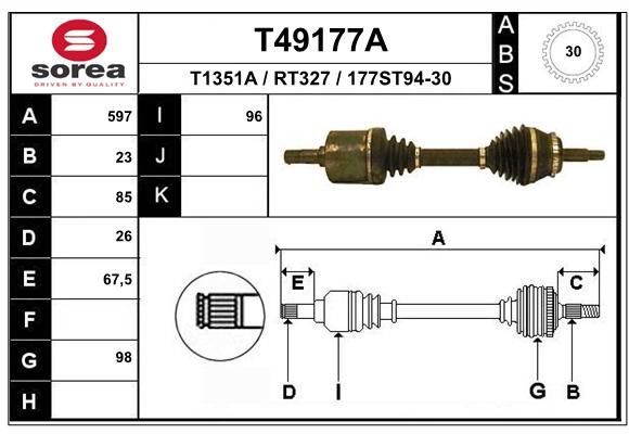 GSP 250100Półoś napędowa RENAULT lewa [23/26]ABS30 (!)
