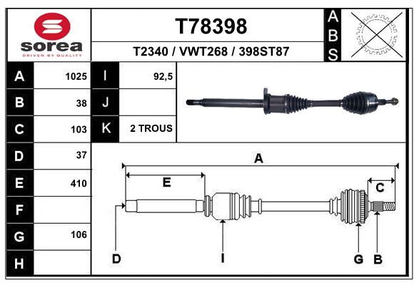 DP2110.10.1746PÓŁOŚ NAPĘDOWA VW T5 09-15 PRAWA