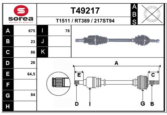 | Średnica przegubu po stronie skrzyni biegów [mm] | 78 |