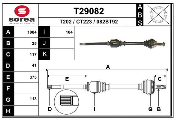 | Średnica przegubu po stronie skrzyni biegów [mm] | 103,5 |
