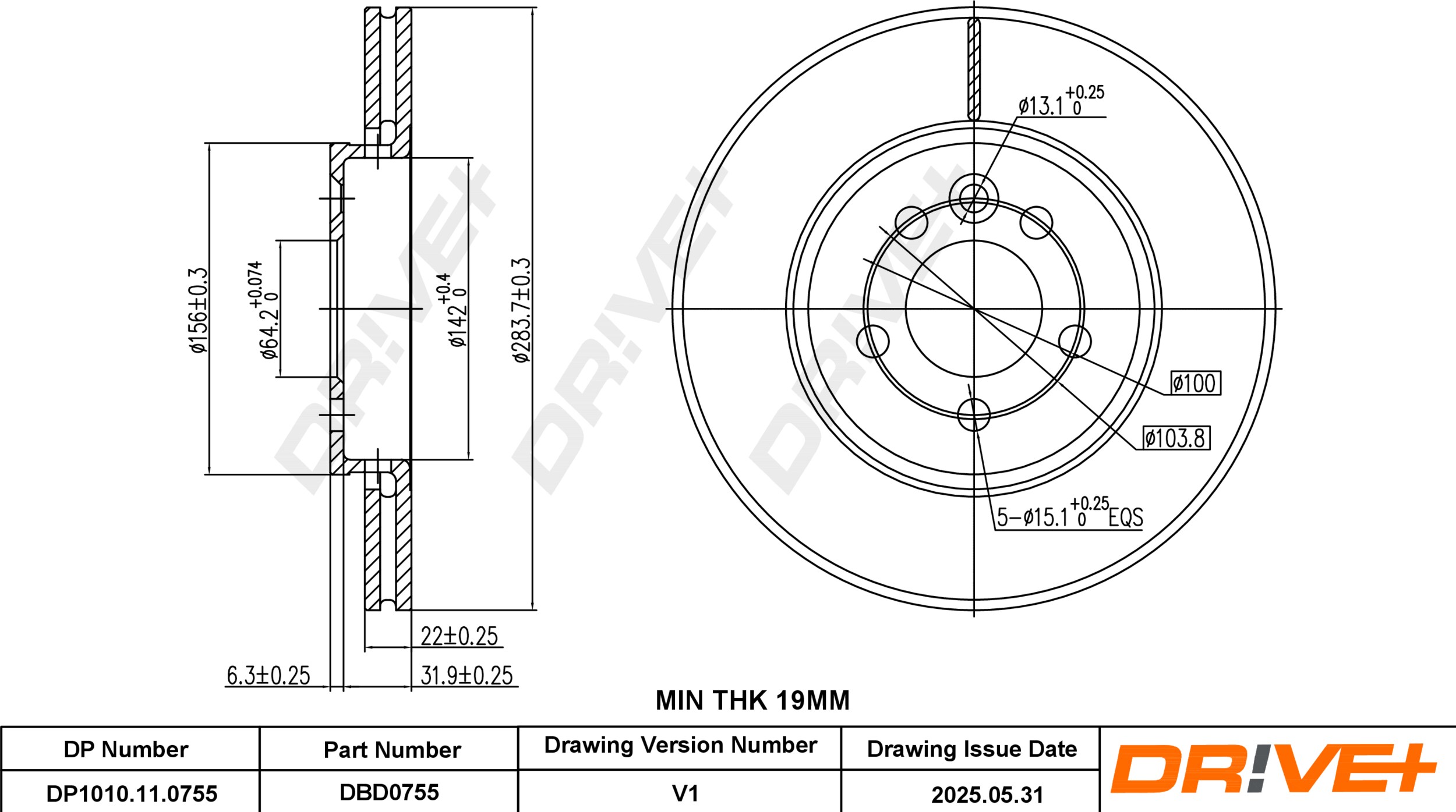 DP1010.11.0755TARCZA HAM. PRZÓD ROVER 75 99- 284X22
