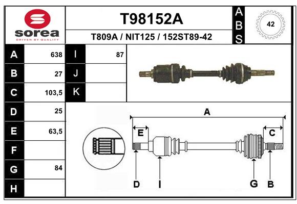 NISSAN PRIMERA P10/P11 1.6 90-01 /PRAWY/ Uwagi: 22/695MM/22 SHAFT
