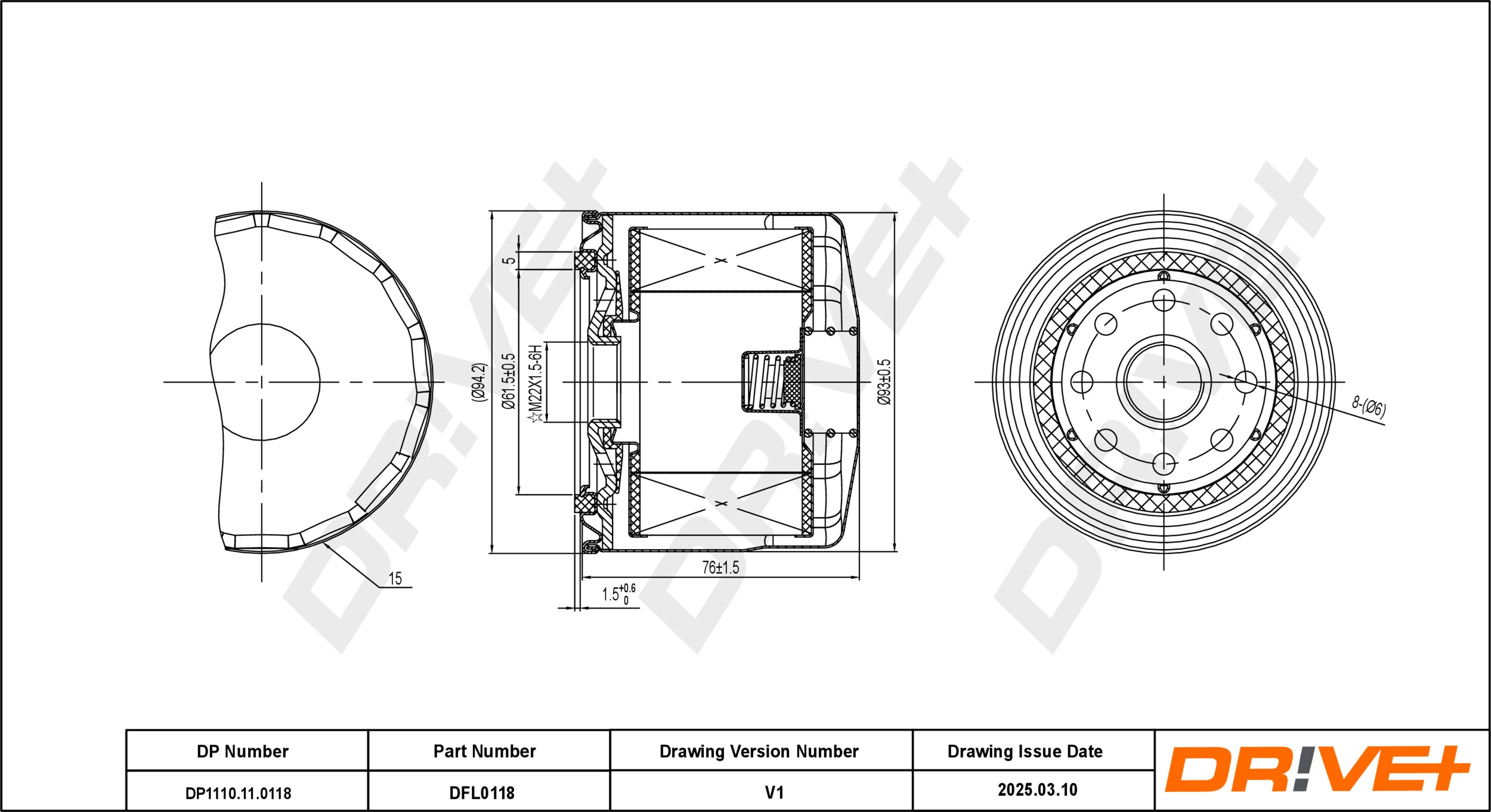 | Wymiar gwintu | M22x1.5 |