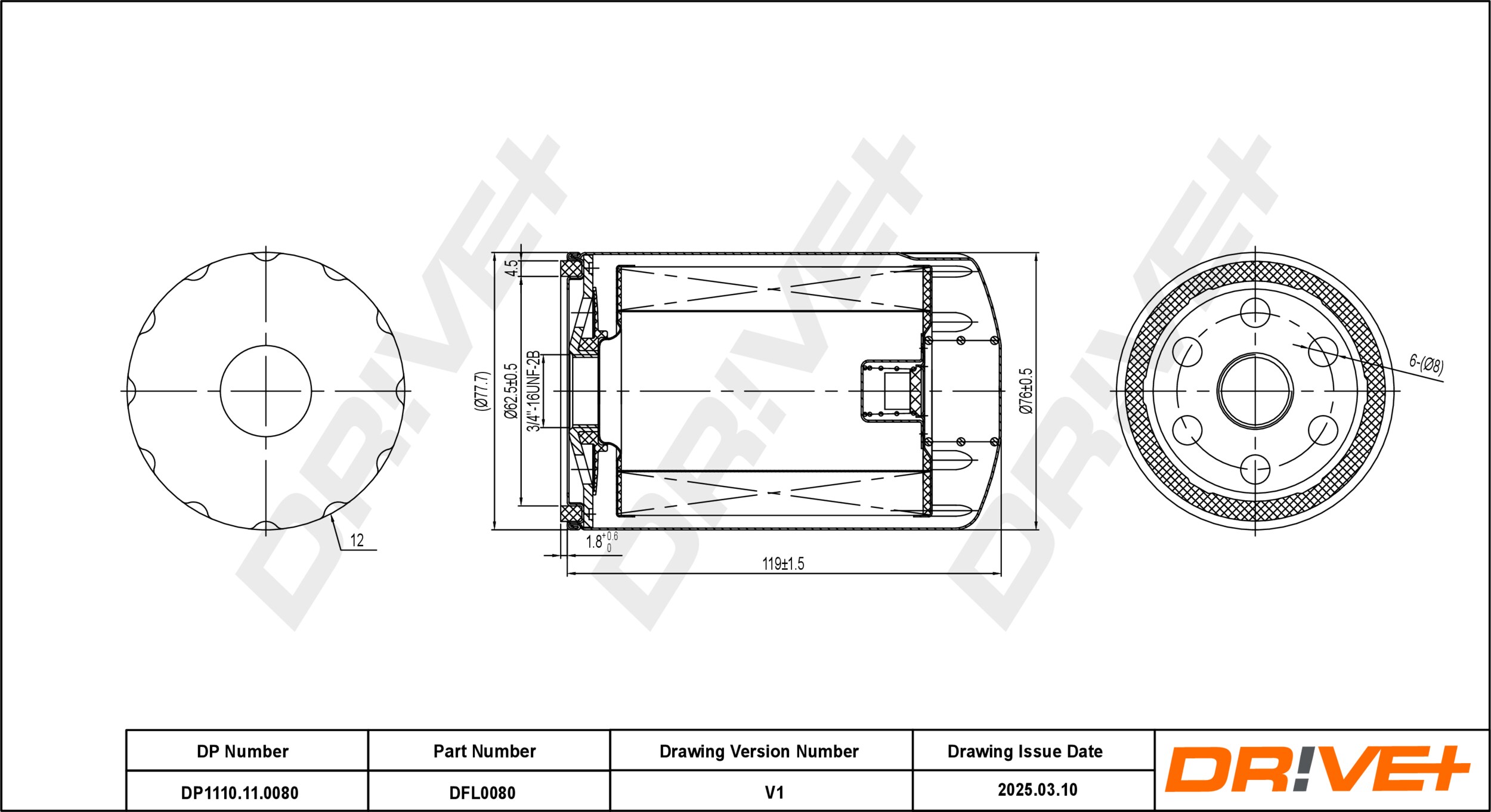 | Wymiar gwintu | 3/4-16 UNF |