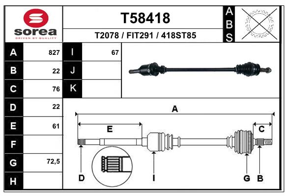 | Średnica przegubu po stronie skrzyni biegów [mm] | 69 |
