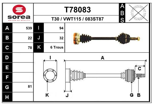 | Średnica przegubu po stronie skrzyni biegów [mm] | 94 |